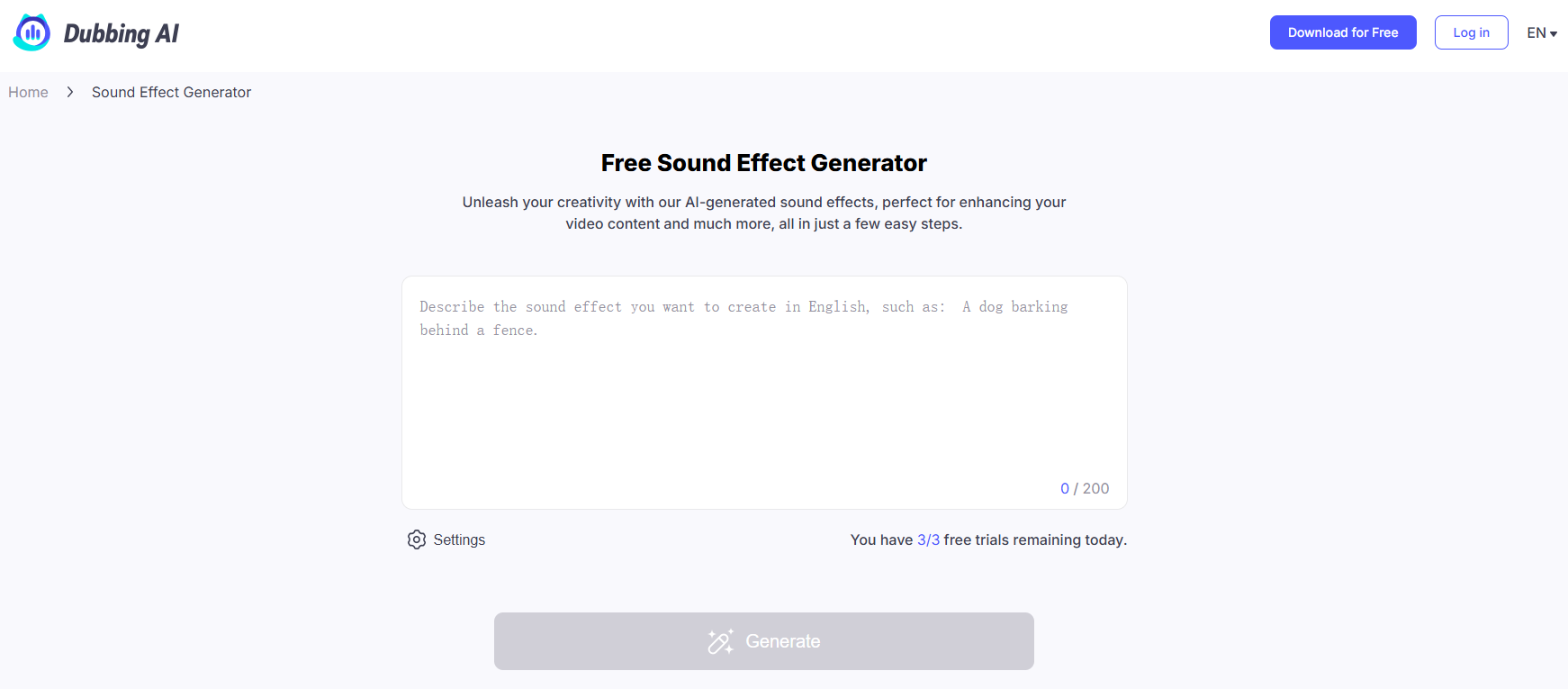 Looking for a tool that does it all? Dubbing AI might be just what you need. You get a sound effect generator and a huge sound library in one place. Dubbing AI helps you create, customize, and download sound effects without any hassle. You can use it for videos, games, podcasts, or even school projects.
