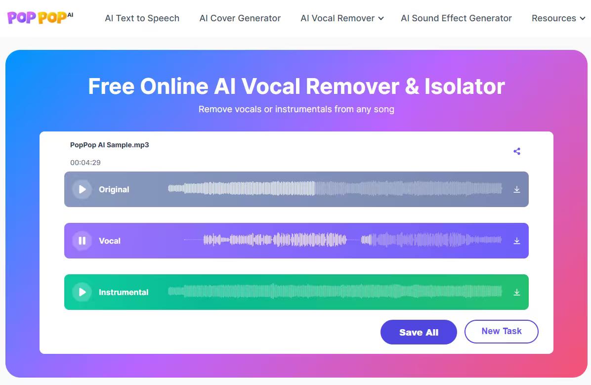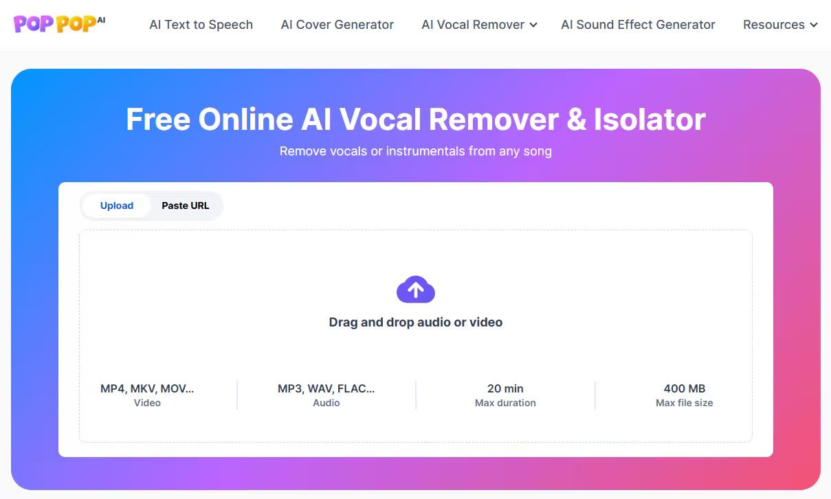 PopPop AI prioritizes simplicity in vocal isolation, offering core functions for audio and video handling. Key capabilities include: