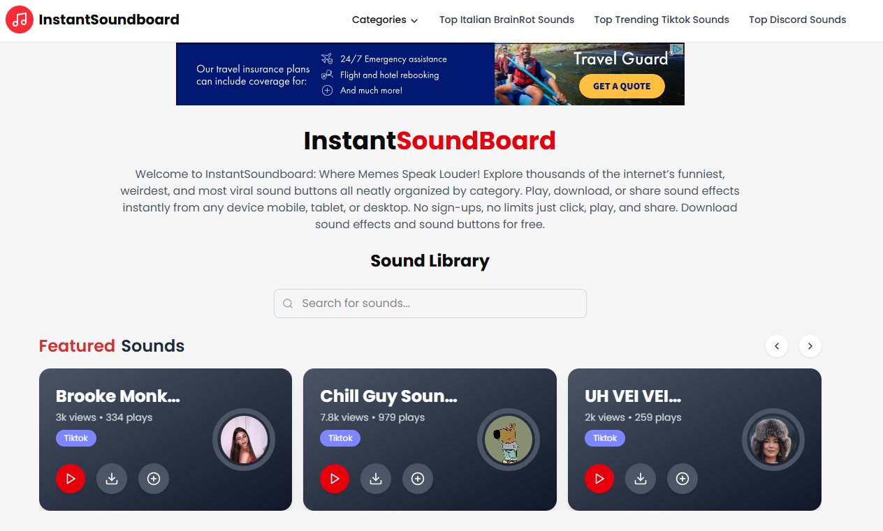 Instantsoundboard.com helps you get the best effects fast. You can play, download, or share sounds with just one click. The site focuses on speed and ease of use.
