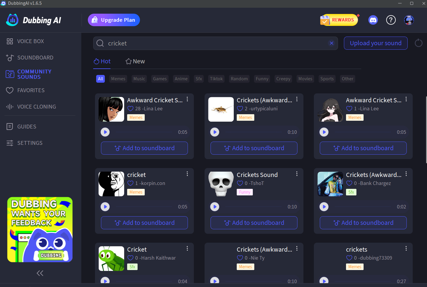 Finding sounds is super easy. Just type "cricket" in the search bar. The AI quickly shows you matching options. You can listen to each sound before downloading it. This helps you pick the right one without wasting time.