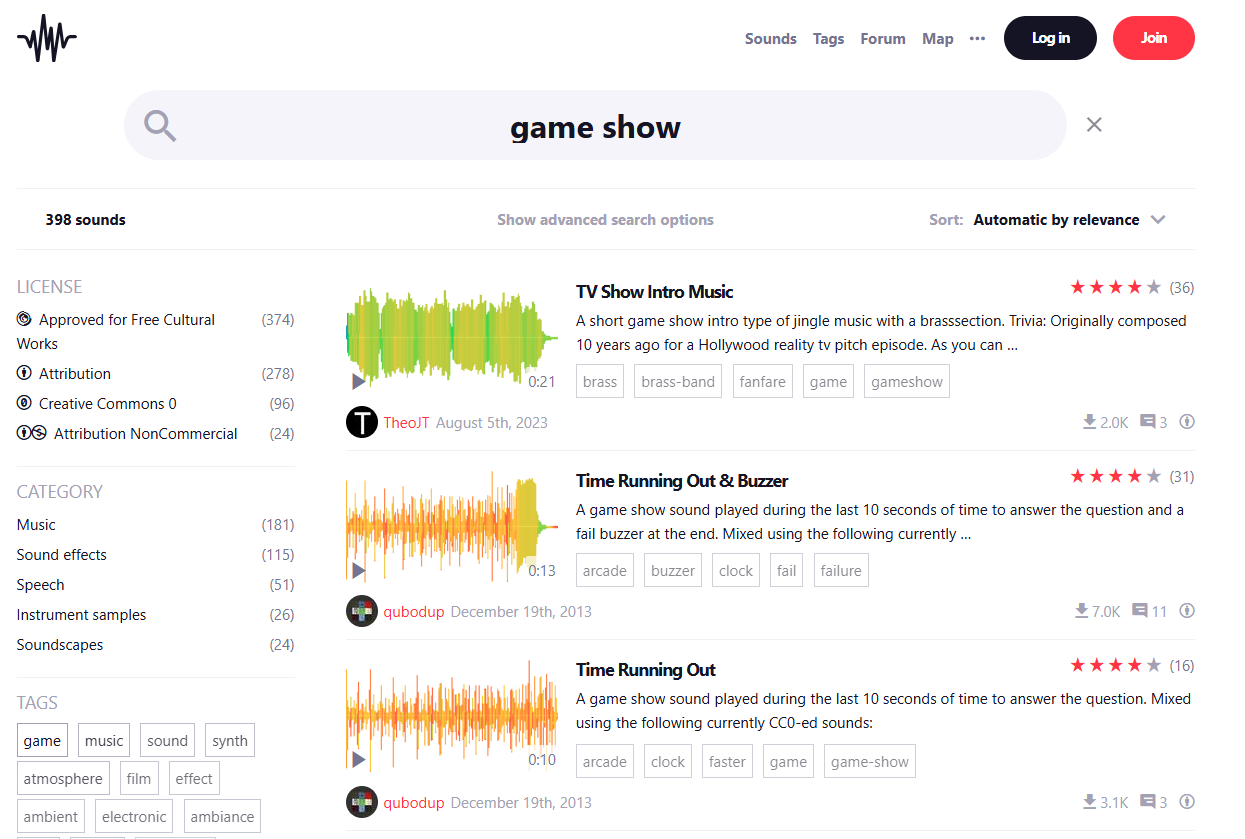 Freesound is a huge sound library built by a community of creators. You can search for free sound effects, buzzer sounds, and wrong buzzer sound effect clips. The platform lets you preview and download free sound clips for your game show. You can explore categories like timers, applause, and suspense music. Freesound’s collaborative nature means you get an extensive collection of unique sounds. You can also upload your own clips to share with others. The platform is easy to search and works well for anyone who wants a custom game show soundboard.