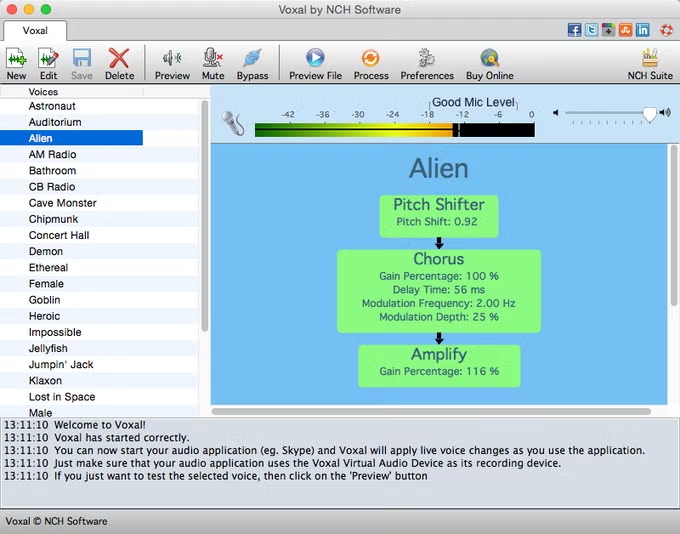 Lots of voice effects to choose from.