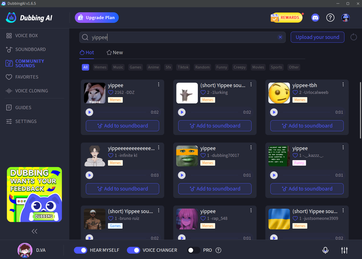 Try Dubbing AI to get great yippee sounds quickly and easily.